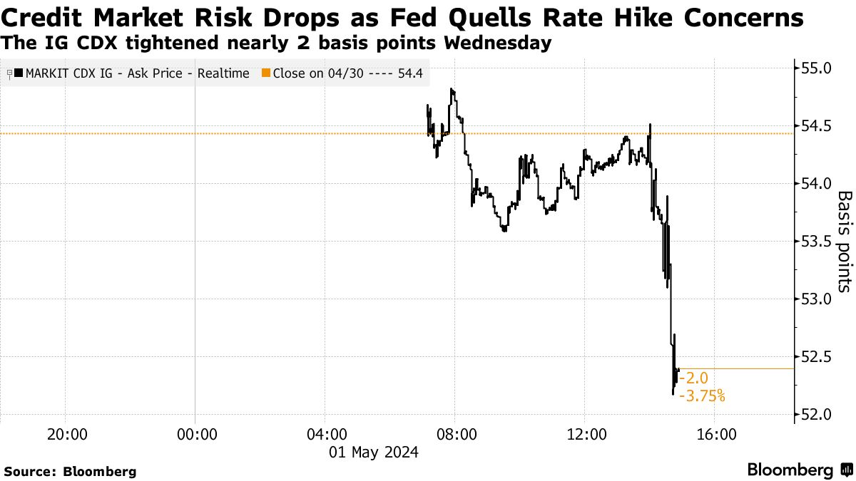信贷市场风险减轻,鲍威尔平息未来加息担忧-彭博社