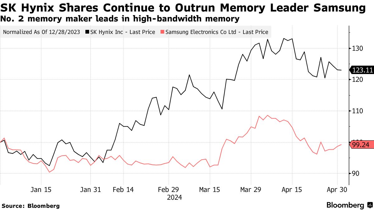 SK海力士是美国到中国开发ChatGPT等服务繁荣所需关键组件的供应商之一。该公司上周录得自2010年以来最快的收入增长速度,预计将继续领导HBM芯片市场,其股价今年已上涨超过20%。