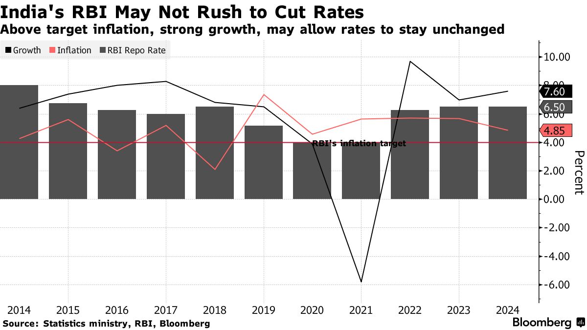 印度储备银行可能会延迟降息直到年底,最新的彭博调查显示,通胀风险上升,美联储将维持利率更长时间。