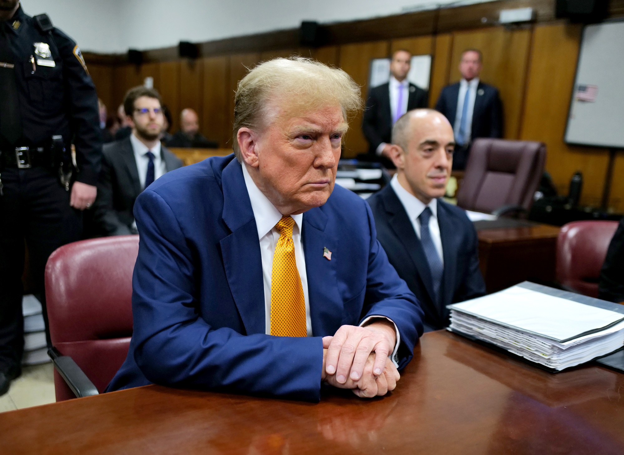 唐纳德·特朗普在纽约曼哈顿刑事法庭出庭,时间为5月2日。