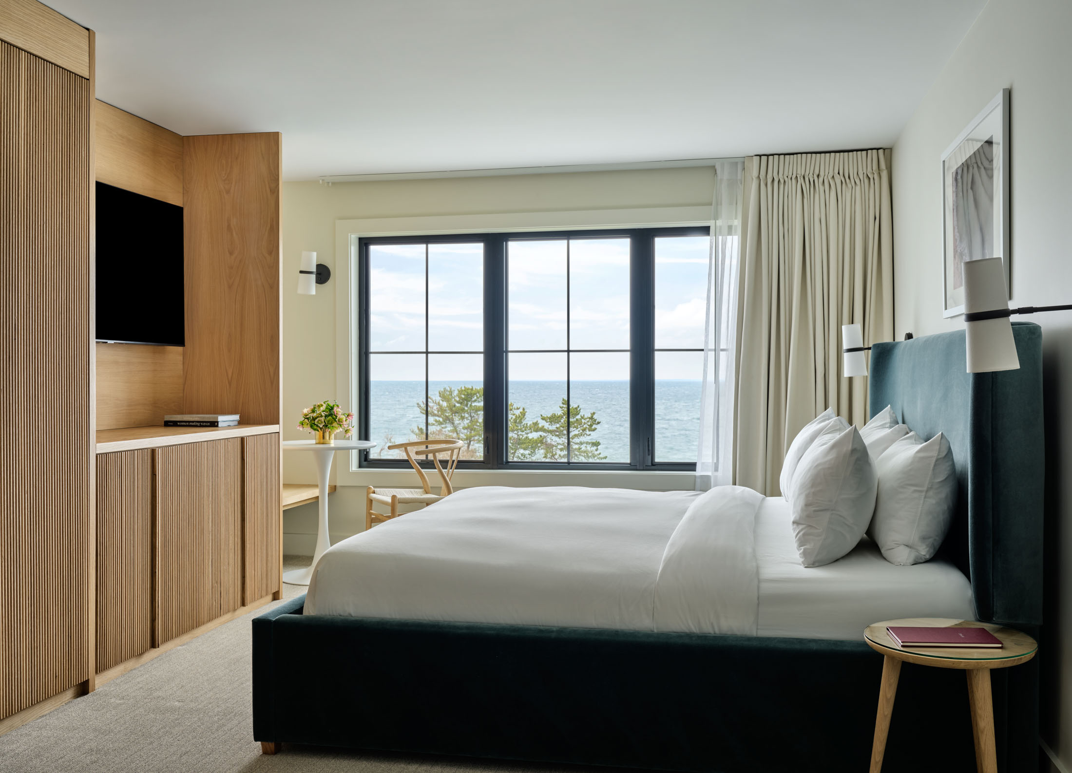 在翻新格林波特的精品门哈登酒店后,夫妻档克里斯汀和丹·佩内西(当地克罗托葡萄园的共同所有者)接管了上世纪60年代的日落汽车旅馆。去年夏天,他们将其改建为莫雷恩酒店,这是一家高档度假胜地,坐落在俯瞰长岛海峡的草坡上。该酒店的20间客房通过中性色调和蓝色装饰以及墙纸上的游泳者和里维埃拉风格的条纹沙滩遮阳伞,增强了海滩环境。泳池边的休息室供应龙虾卷(30美元),以及一杯普罗塞克或葡萄柚气泡酒。房价从225美元起。