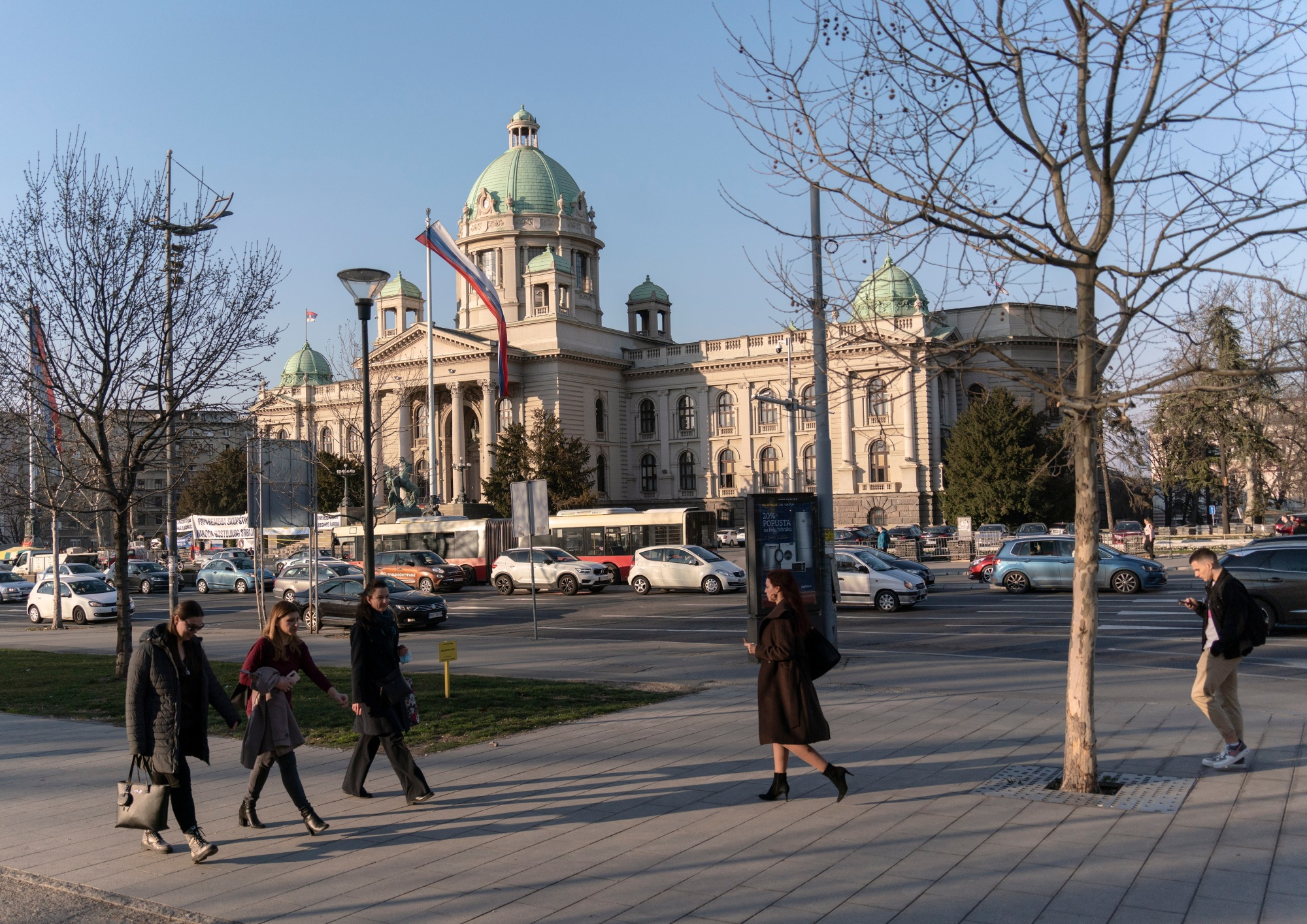 贝尔格莱德的塞尔维亚议会大厦。周四,贝尔格莱德的议员以152-61的投票通过了政府。
