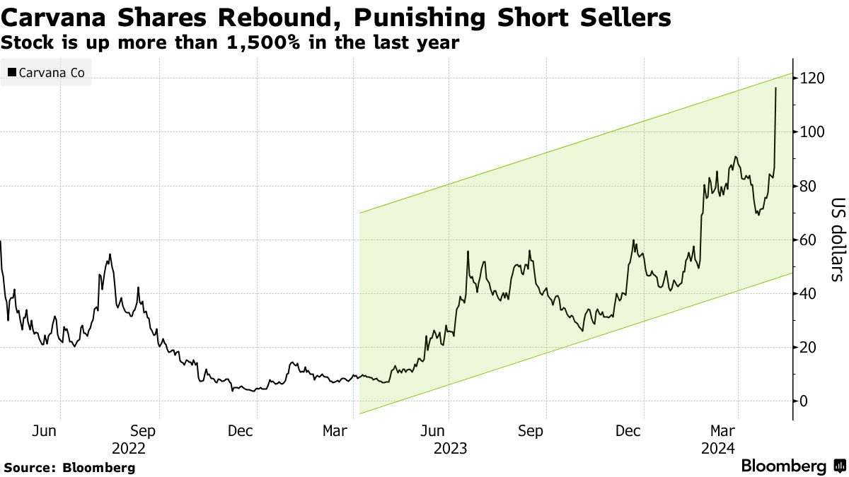 Carvana(CVNA)股价飙升给空头卖家带来痛苦 - 彭博社