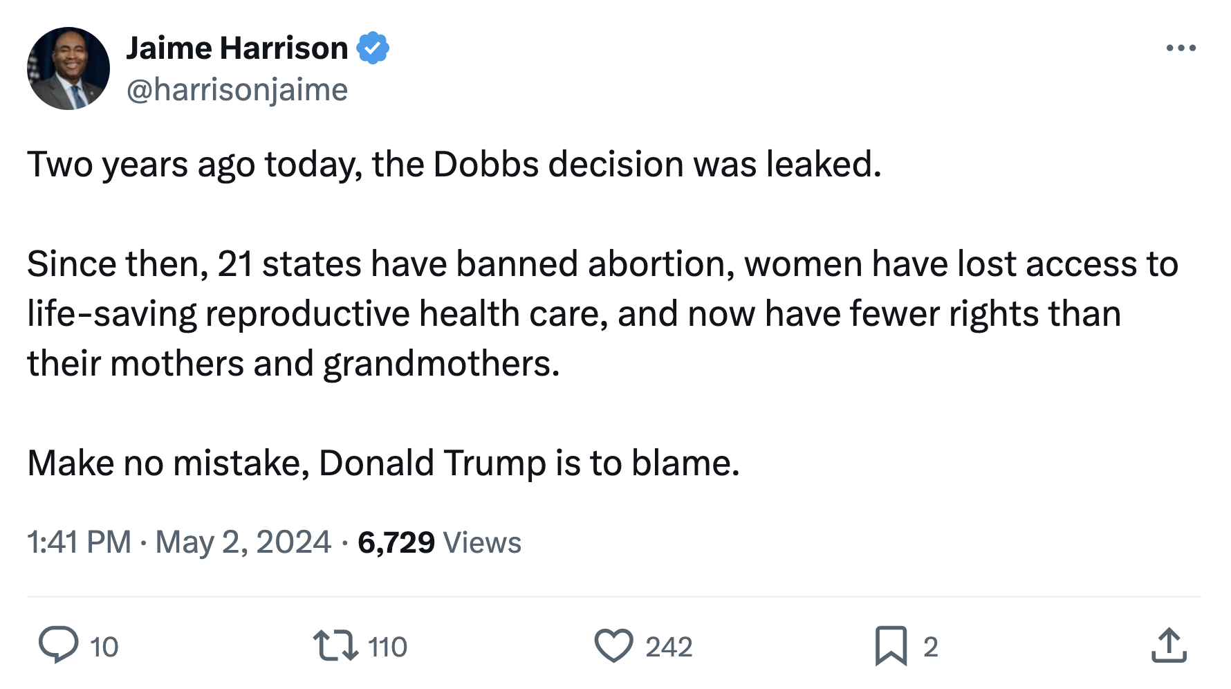 2022年5月2日,Politico 发布了 最高法院推翻罗伊诉韦德案 的首份草案。没有堕胎权, “恐怖故事层出不穷,” 玛丽·艾伦·克拉斯 写道。阳光州的“强制等待24小时期限,再加上禁令,实际上结束了佛罗里达50年的生殖自由,去年在那里进行了超过84,000次堕胎。” 现在,全国人口最多的两个州 — 佛罗里达和德克萨斯 — 几乎实行绝对禁令,成千上万的妇女需要为了得到医疗服务而冒着身体和财务健康的风险而数百英里旅行。