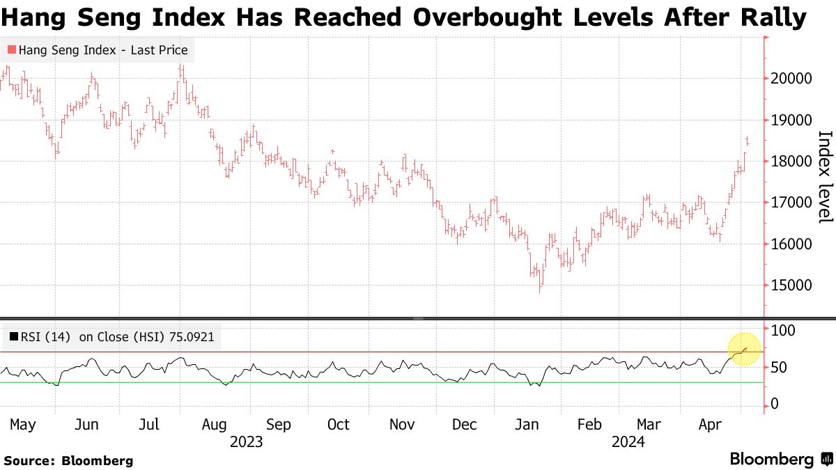 购买热潮已经将该市的几个关键指数推至超买区域。恒生指数和恒生中国企业指数的14日相对强度指数均超过了70的水平,被视为最近涨幅可能过度的指标。