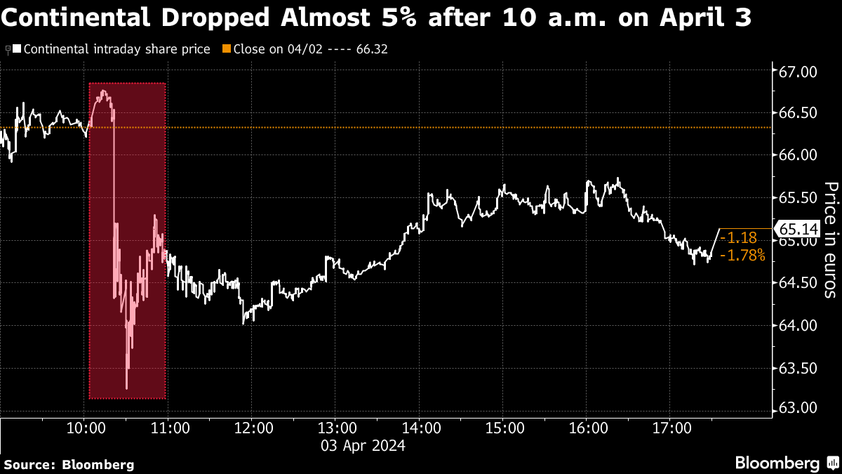 摄影师:Alex Kraus/Bloomberg上个月的一个早晨大约10:20,大陆公司的股价下跌了近5%。公司没有发表任何声明,也没有重要的行业新闻。但大多数交易员都知道。又到了那个时候。