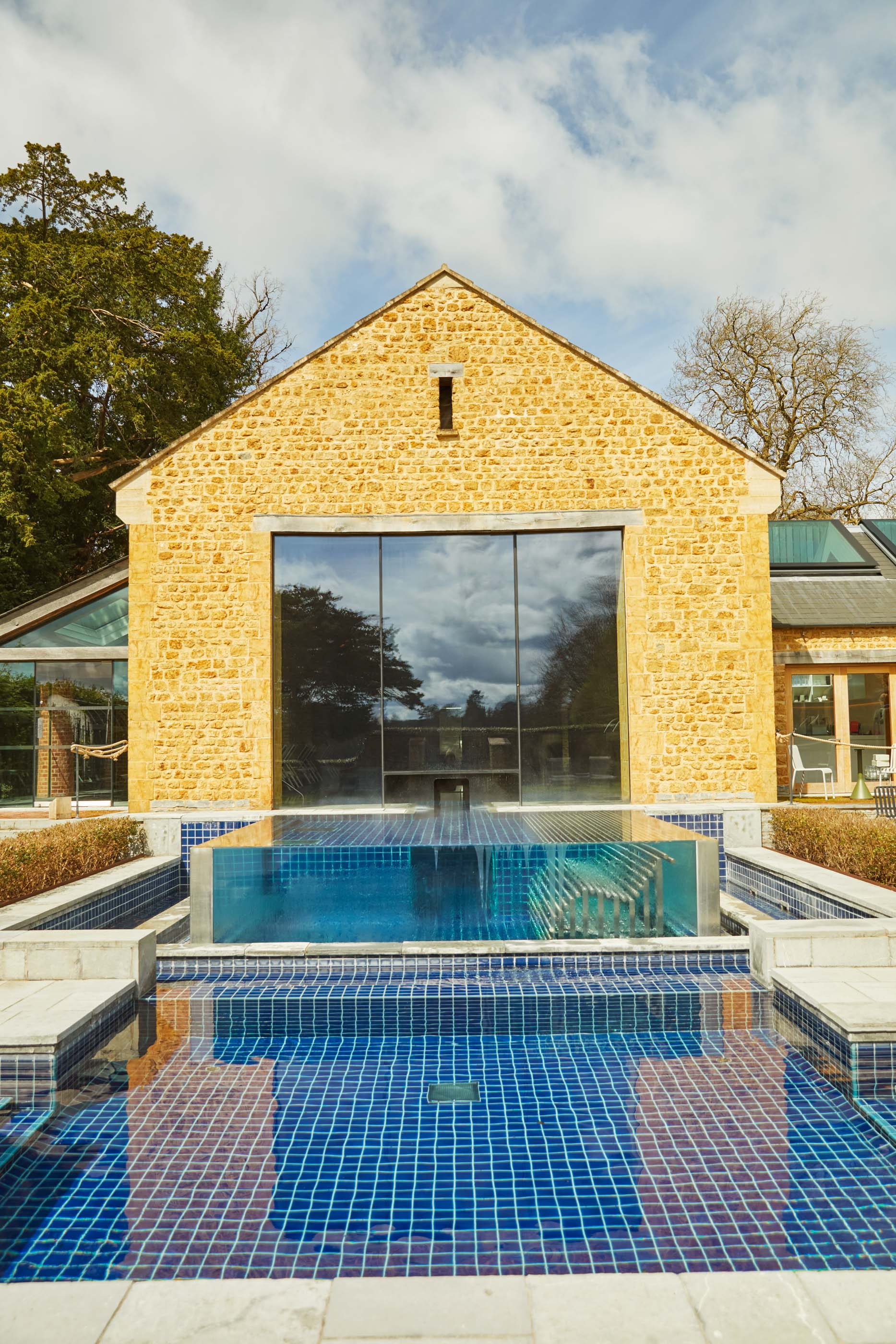纽特(Newt)的温泉池。摄影师:Emli Bendixen,为彭博商业周刊(Bloomberg Businessweek)拍摄我去温泉的房间|纽特(Newt)是一个放纵一点、放慢节奏的地方。(房价从约625英镑起,对于一家在世界50佳酒店名单上的酒店来说并不算奢侈。) 你必须接受英国人喜欢步行的习惯来四处走动;我穿过苹果园漫步约20分钟后到达温泉,它位于一个独立的砖砌建筑内——这是庄园工作农场的一部分,内有一个令人惊叹的室内外泳池。顾名思义,“放松”的按摩效果很好;治疗师解开了我颈部的一个结,我一直忍受着。查尔斯也进行了一次长途步行,但是去了一个经过精心修复的罗马别墅改建的博物馆——他仍在谈论它。