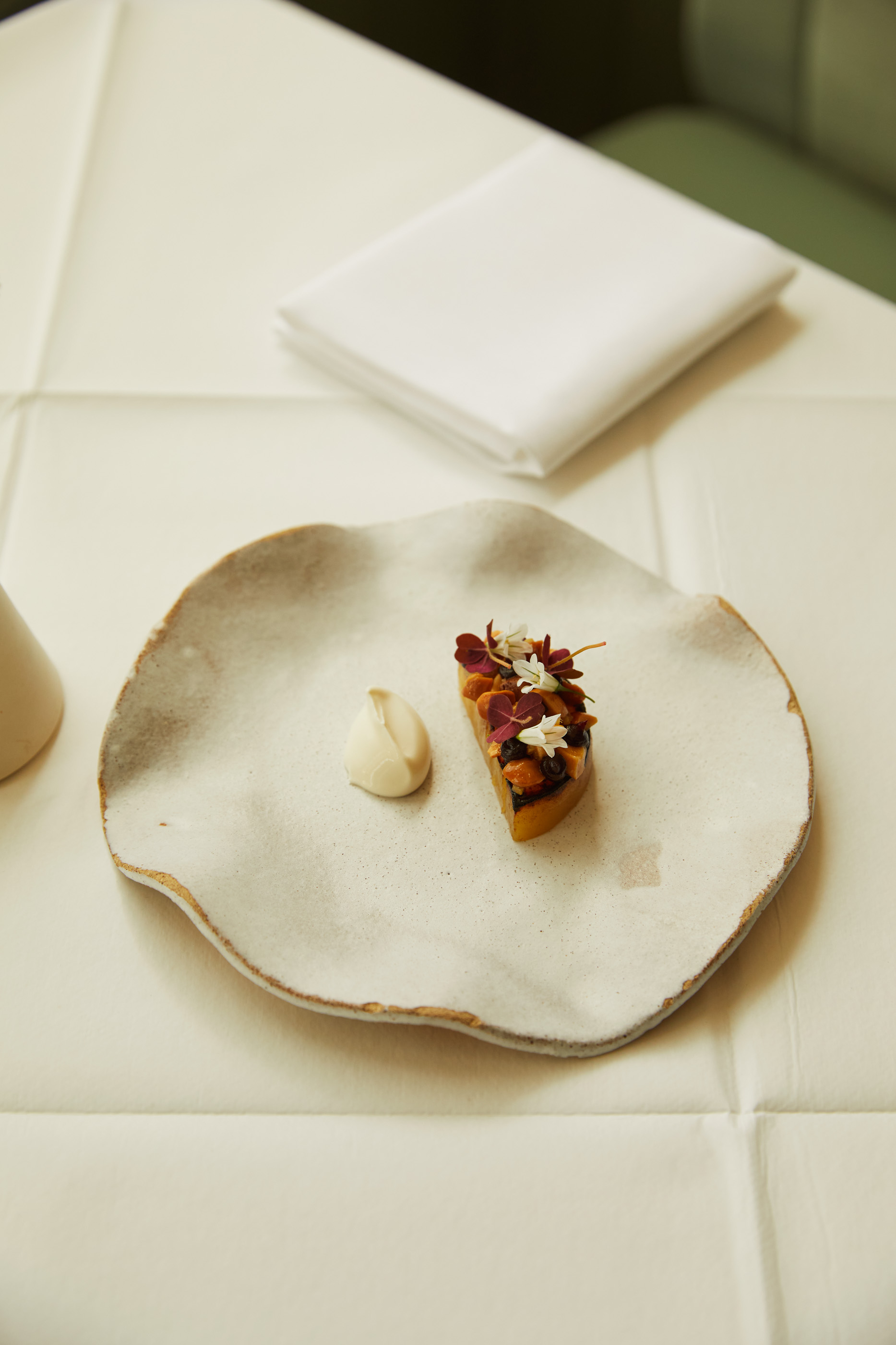 在布鲁顿的Osip餐厅,一道金色甜菜根配柠檬酱。摄影师:Emli Bendixen,彭博商业周刊该镇还设有Hauser & Wirth画廊的分店,那里有适合漫步的美丽庭园。但布鲁顿最杰出的创作来自厨师Merlin Labron-Johnson,在Osip餐厅的一个鞋盒大小的厨房里烹饪。我们在那里用餐,品尝到了慢烤甜菜根配酸奶霜、榛子和柠檬酱,以及装满松露、蜂蜜和咸蛋黄的芹菜泥。搭配上有趣的葡萄酒和(更多)苹果酒,这顿饭单独就值得横跨大西洋的旅行。