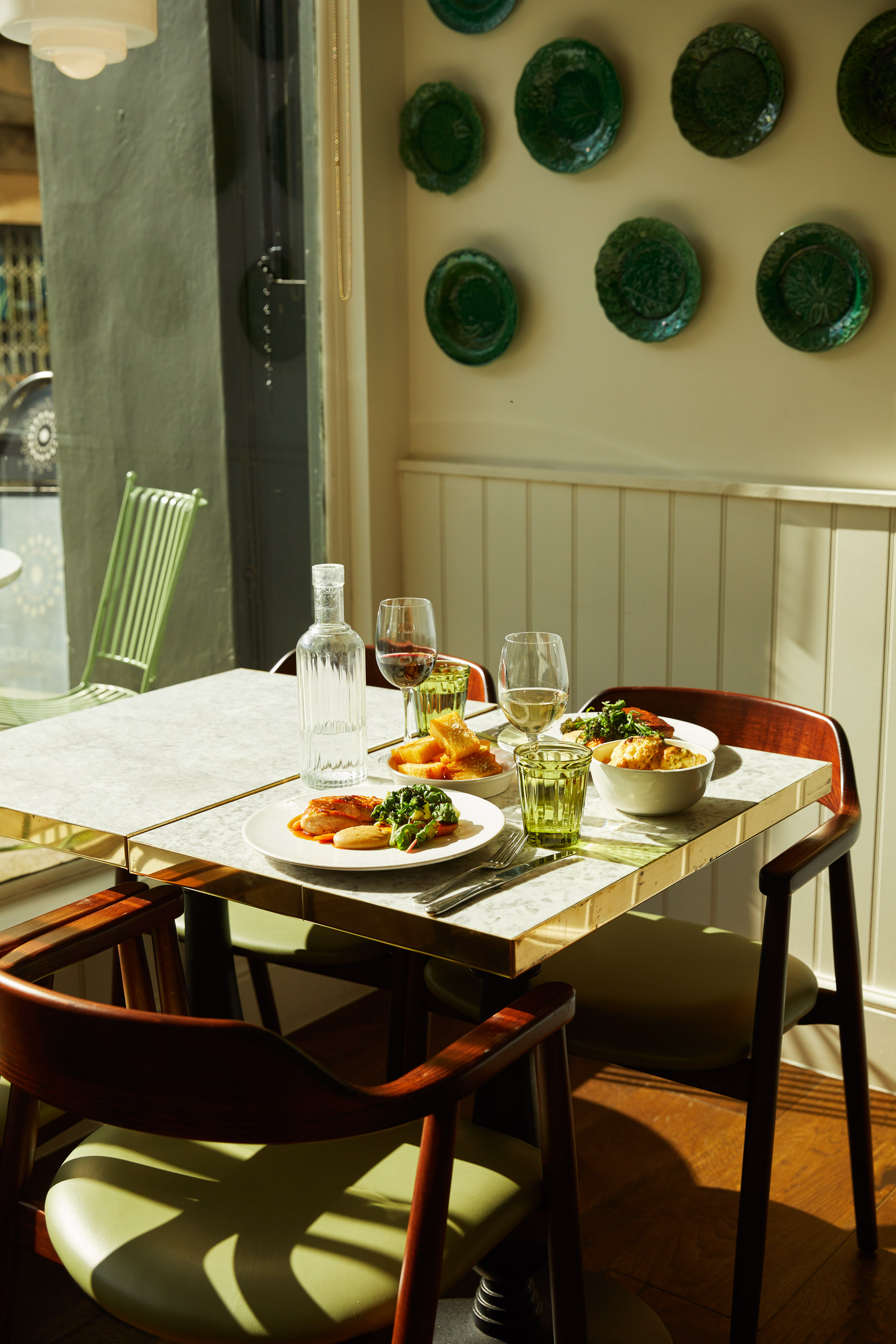 这家餐厅感觉像一个温室,阳光透过满墙的窗户洒进来。在一连串美味的烤牛肉、约克郡布丁和花菜奶酪酱之后,我们让服务员说服我们尝试了一勺“俏皮的大黄杆冰沙”。