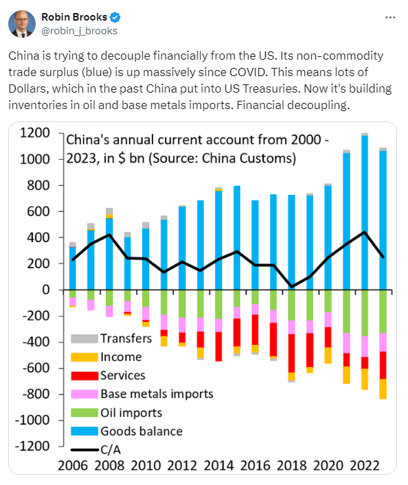 尽管工资上涨可能对美国工人是一件好事,但美联储不希望看到大幅加速。鲍威尔周三指出,作为经济供需平衡的一个迹象,工作岗位空缺有所下降。 (至少部分原因要归功于移民,正如本通讯之前所强调的)。