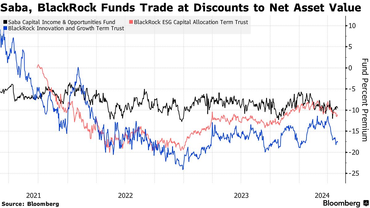 Saba寻求将BlackRock从六只封闭式基金的投资经理中剔除