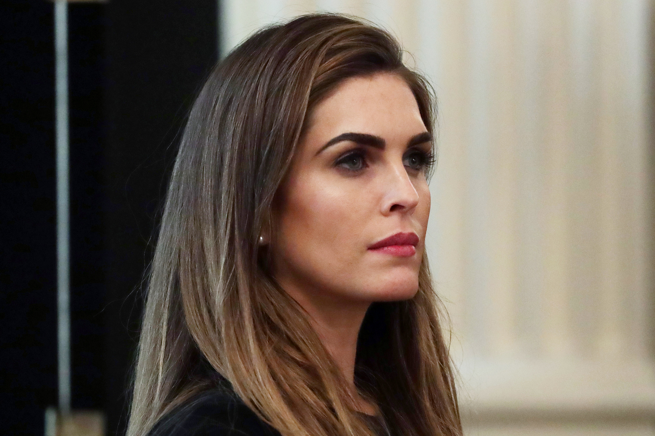 霍普·希克斯摄影师:亚历克斯·王/盖蒂图片社“这是一场危机,”希克斯谈到了这段录音,称其立即引起了竞选活动的骚动,并受到了特朗普同党共和党人的批评。