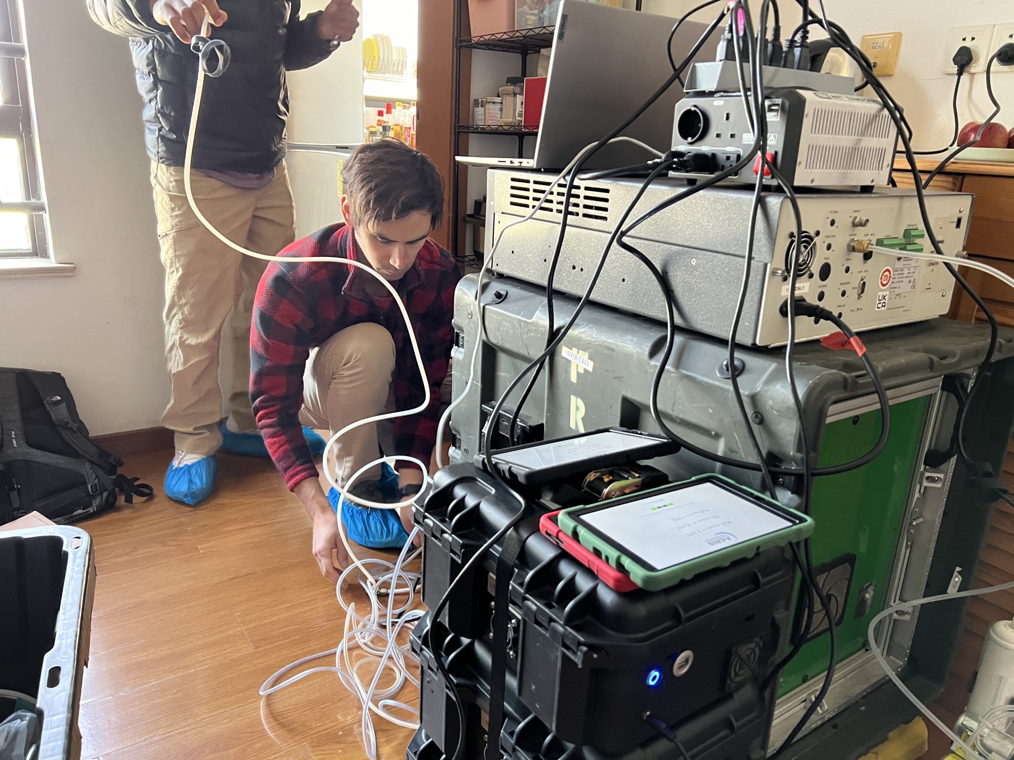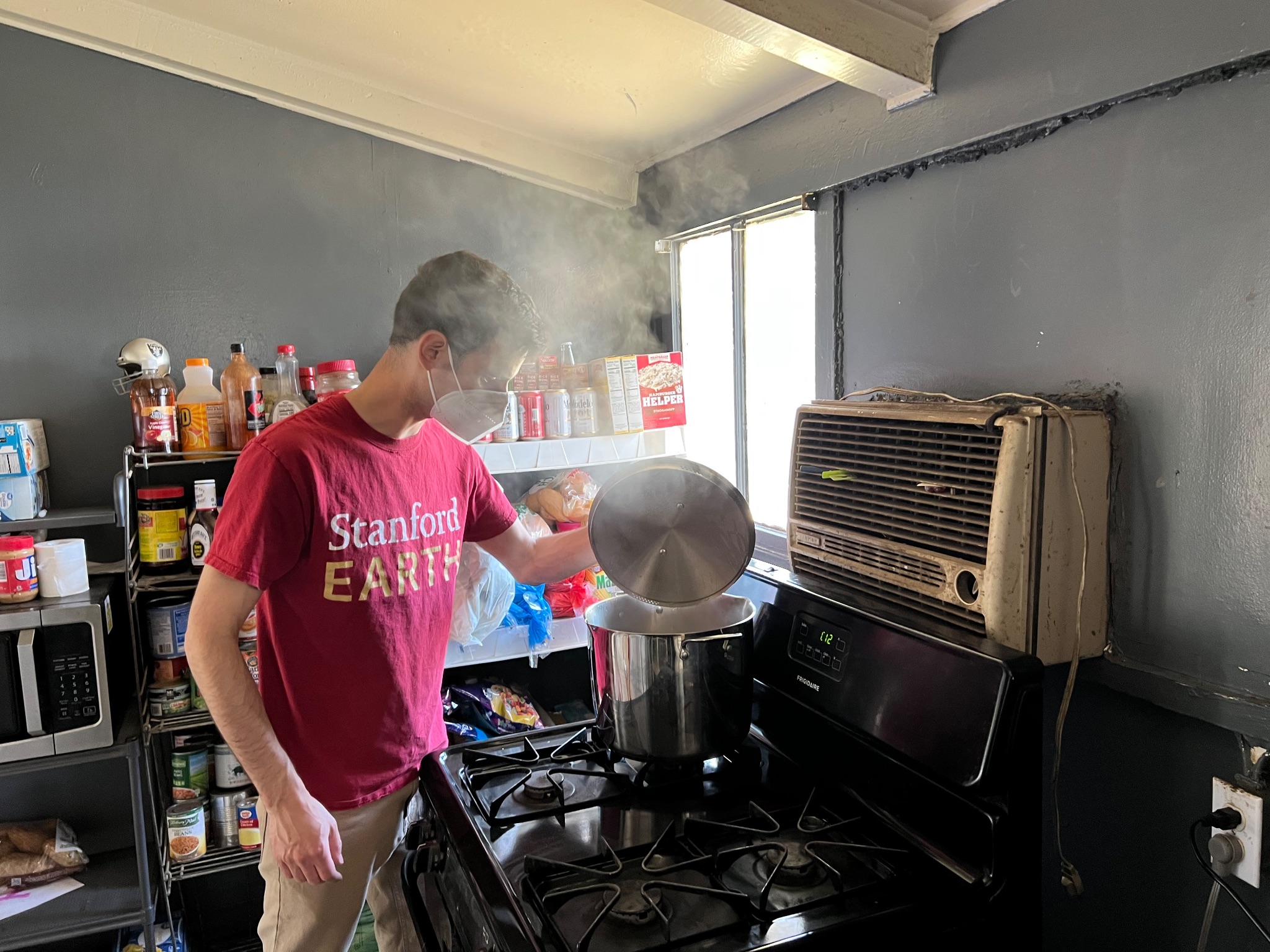 一位斯坦福研究人员分析厨房外的NO2浓度。图片来源:斯坦福大学多尔可持续发展学院的Rob Jackson