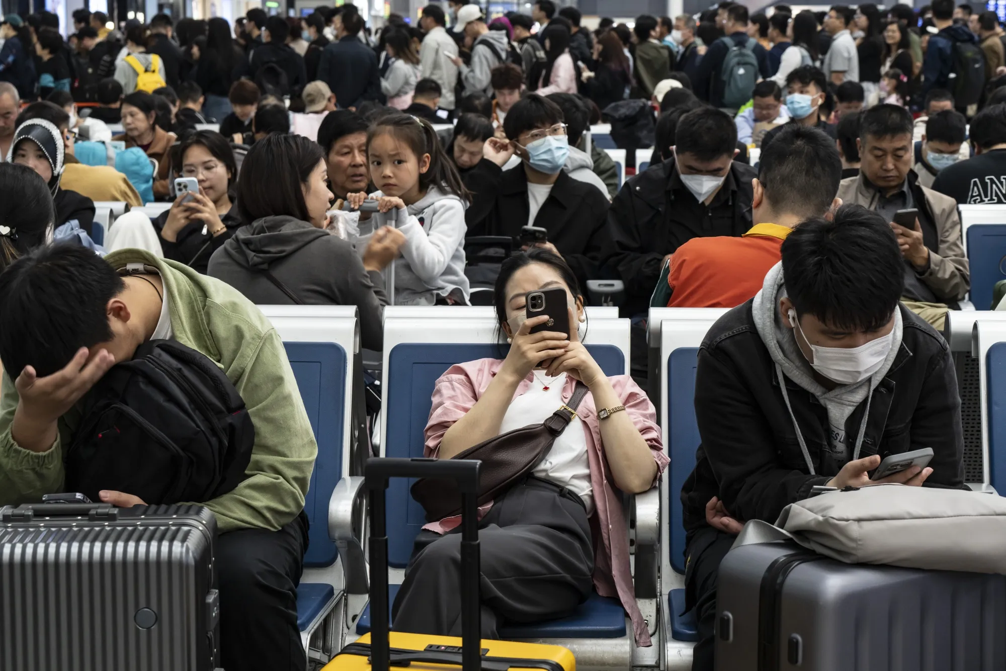 4月30日,劳动节假期前,上海虹桥高铁站的旅客。摄影师:沈启来/彭博社文化和旅游部表示,假期期间,随着中国恢复更多航线并 扩大对更多国家的免签安排,入境和出境旅游也获得了动力。中国游客出境旅行190万次,而180万游客进入中国,但未提供去年的数据。