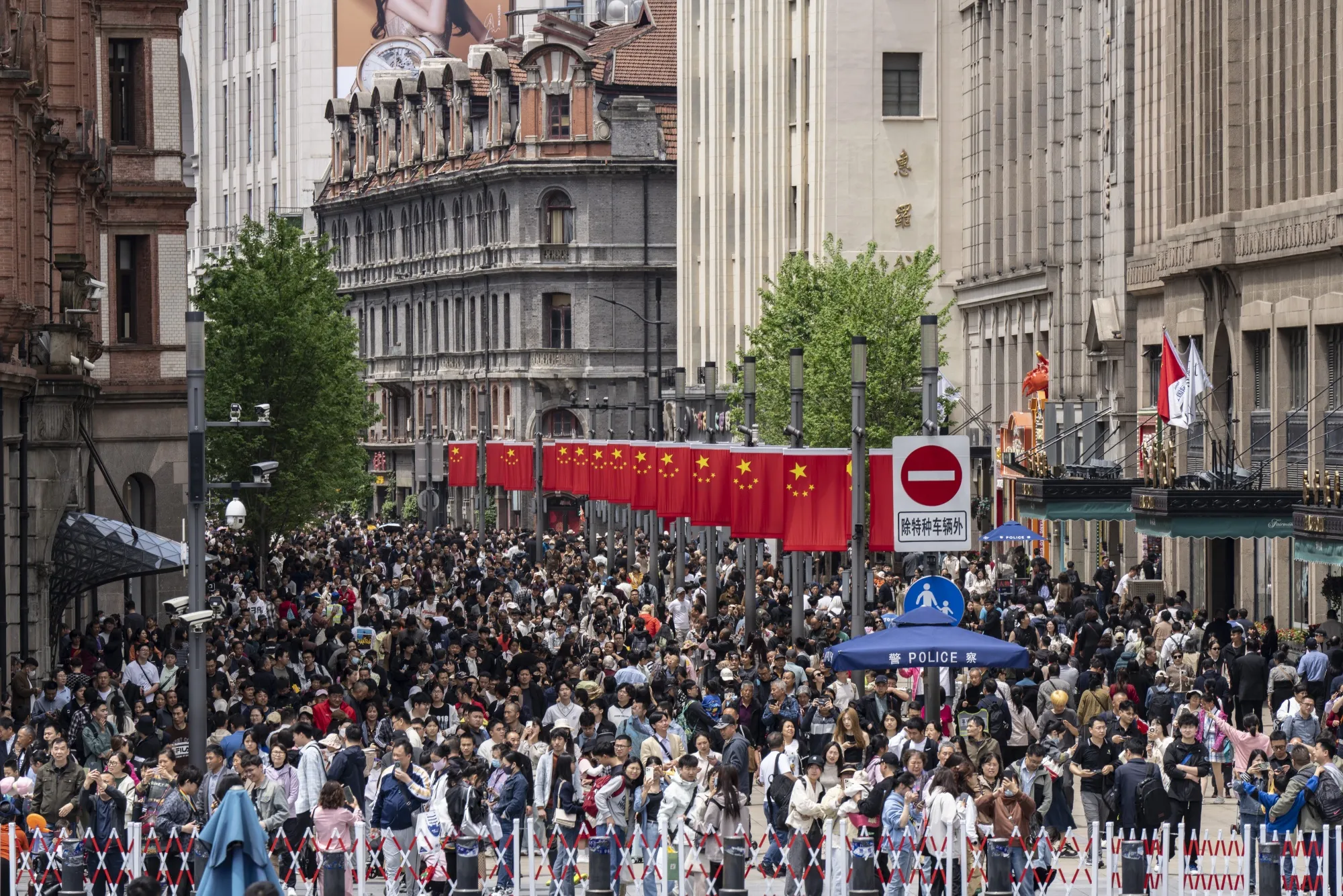 5月1日,上海南京路购物区的游客。摄影师:沈其来/彭博社数据显示,尽管近期经济增长因工业活动回升而反弹,但中国家庭在消费上仍然保持谨慎。根据中国人民银行的一项 调查,不到四分之一的居民希望增加消费,而越来越多的城市居民希望在第一季度储蓄。