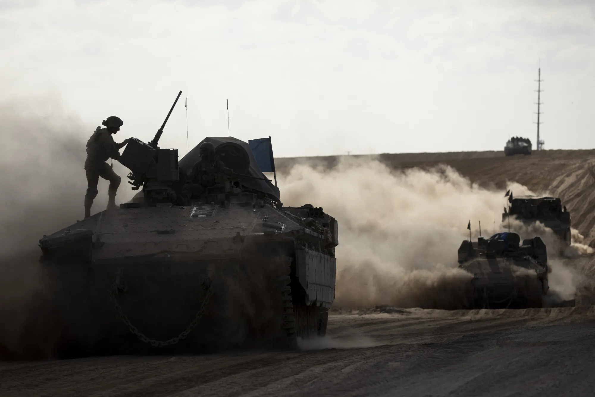 一名以色列士兵站在装甲运兵车上,沿着与加沙的边界移动,时间是5月29日。摄影师:阿米尔·莱维/盖蒂图片社美国与埃及和卡塔尔合作,确保停火并释放仍被认为被扣为人质的剩余人员;他们的数量为130人,但其中多达一半的人被担心已经遇难。