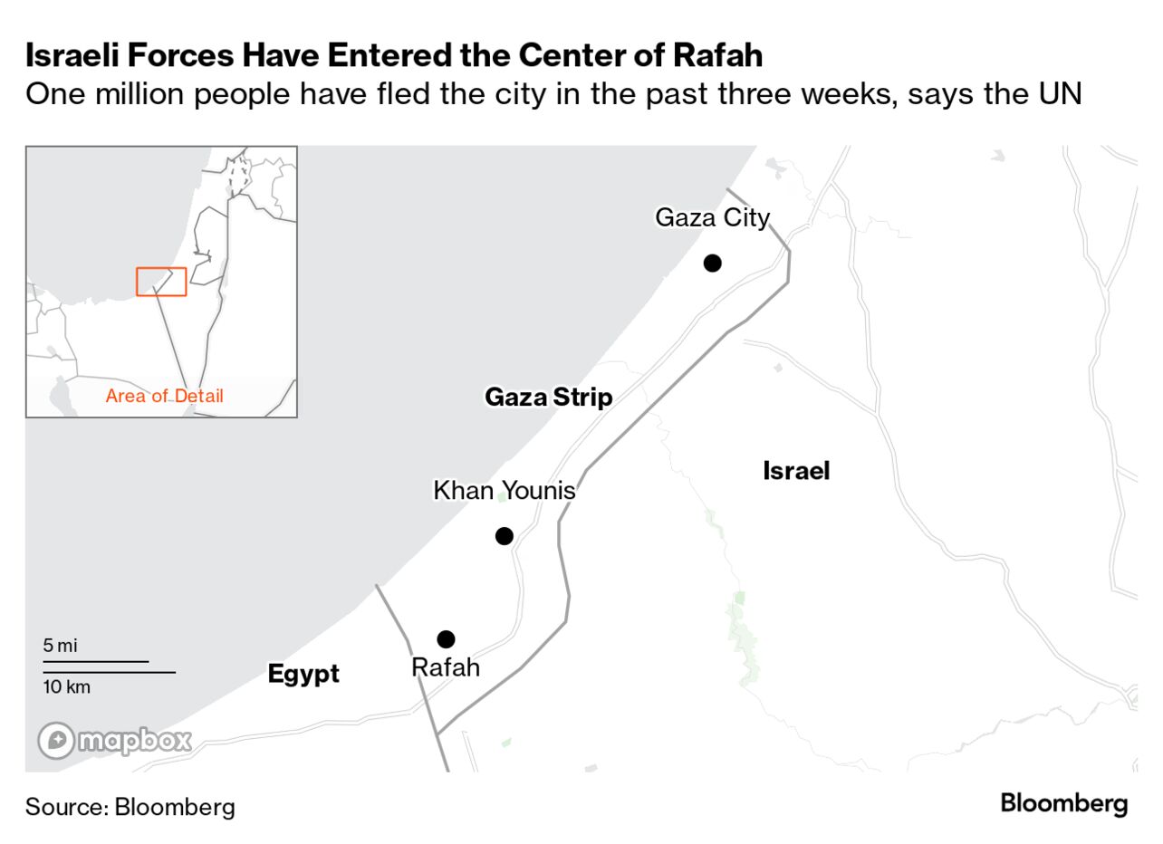 迈克尔·哈特内特摄影师:阿莱西娅·皮尔多梅尼科/彭博社拉法, Gaza 地区最南端的城市,现在是以色列与巴勒斯坦组织哈马斯之间战争的中心。以色列军队在五月初开始进入这座城市。以色列决心对拉法发起重大攻击,引发了美国、埃及和 其他国家的 对平民的担忧,因为这曾是该飞地唯一剩余的安全避风港。国际法院于 5月24日发布了一项临时裁决,命令以色列立即停止在拉法地区的军事行动。以色列表示,其在那里的行动是为了消灭哈马斯——这个伊朗支持的武装组织,该组织在10月7日对以色列的袭击中造成1200人死亡,250人被绑架。