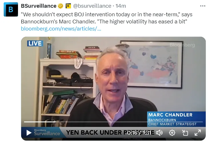 他承认他还不确定美元是否已经见顶。但日本银行在过去曾在美国收益率见顶时采取行动——而国债实际上在上周反弹。“日本人可能再次选择了美国利率的顶部,以及美元的短期顶部,”他说。