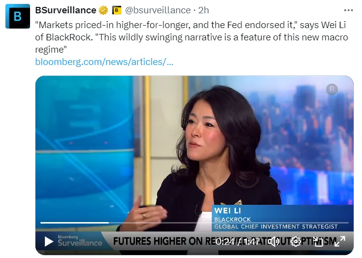 贝莱德的魏莉今天表示,她仍然看好全球股票。在Truist咨询服务公司,Keith Lerner利用四月份的股市回调增加了他的股票头寸。他表示,美国之所以“例外”,是因为最大的驱动力是科技公司,而这也是大额盈利的来源。”