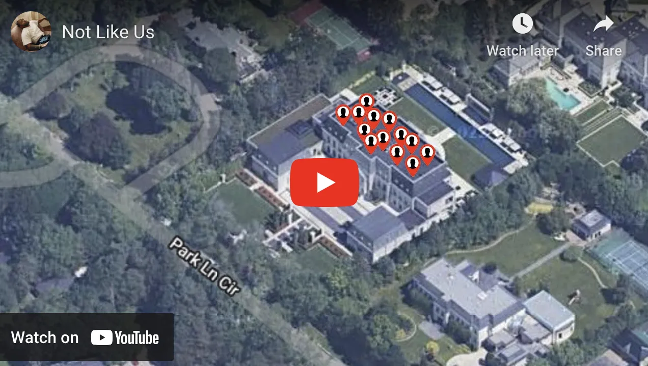呃,德雷克要卖掉他的房子吗?虽然我不会尝试解释他与肯德里克·拉马尔的争执的起源,但我确实想知道他在这场说唱大战后是否会保留他那50,000平方英尺的石灰岩豪宅。肯德里克的第四首反击曲《不像我们》的专辑封面显示了德雷克住所的鸟瞰图,上面满是性犯罪者图标:
