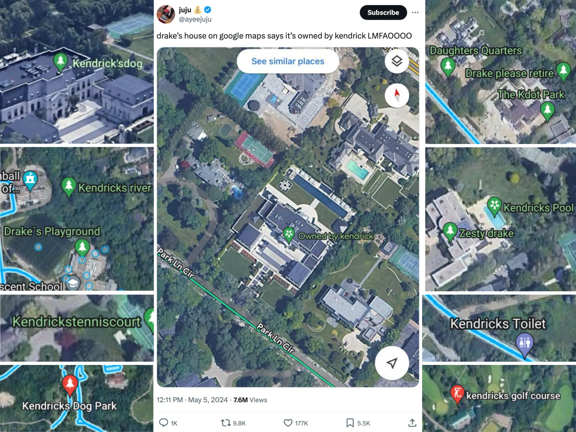 现在,肯德里克的粉丝们正在在谷歌地图上制造混乱,通过放置暗示性的位置标记在他的庄园周围: