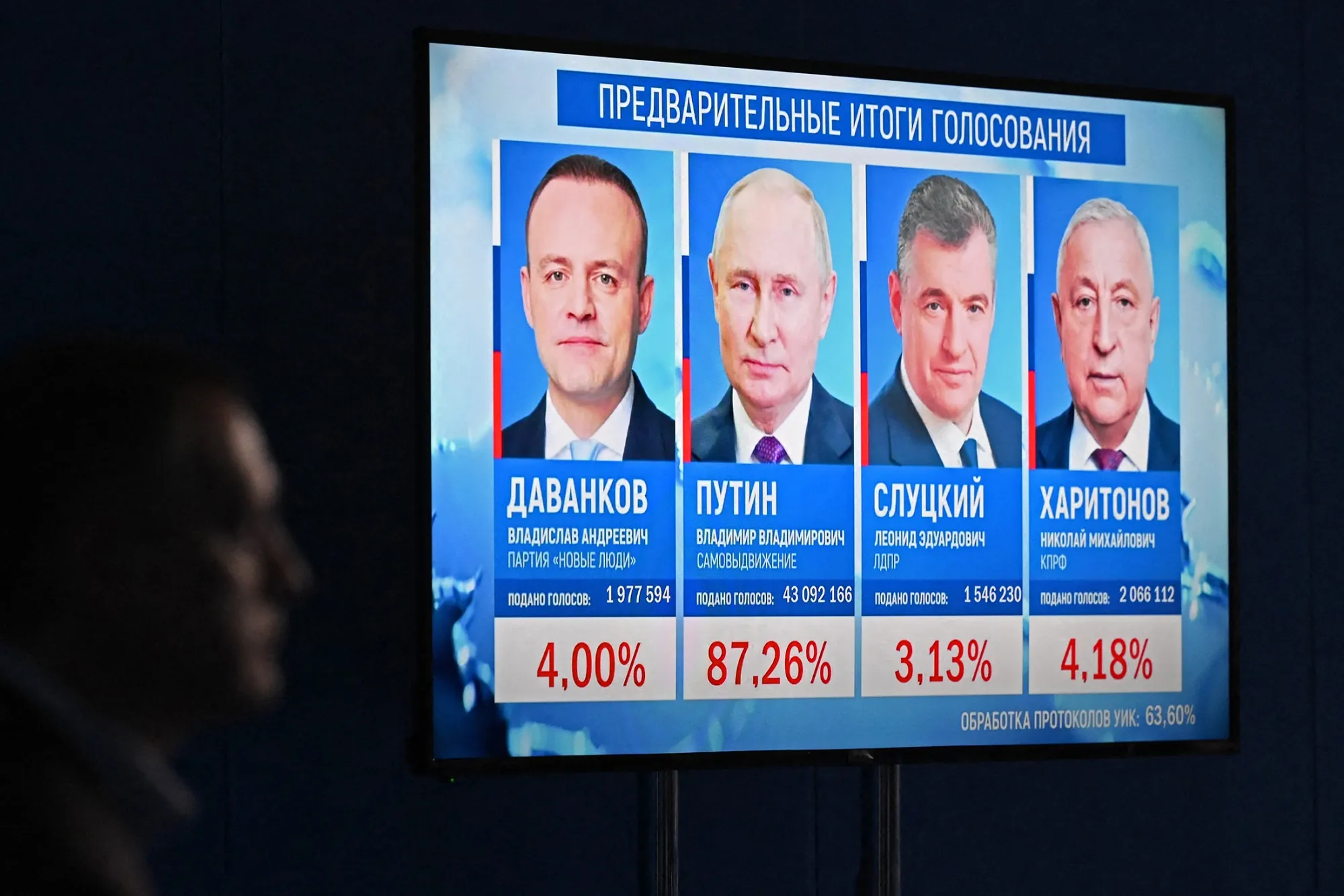 3月17日的初步总统选举结果。摄影师:Natalia Kolesnikova/法新社/盖蒂图片社民调显示,公众对普京的支持仍然很高,87%的人赞同他的领导,76%的人支持俄罗斯在乌克兰的军队,根据沃尔科夫的说法,在3月的调查中。虽然普京在2022年9月下令动员30万名预备役人员是一次“强有力的冲击”,引发了30年来民调中最剧烈的 公众焦虑,但当当局明确表示不会重演时,情绪又恢复了过来,他说。