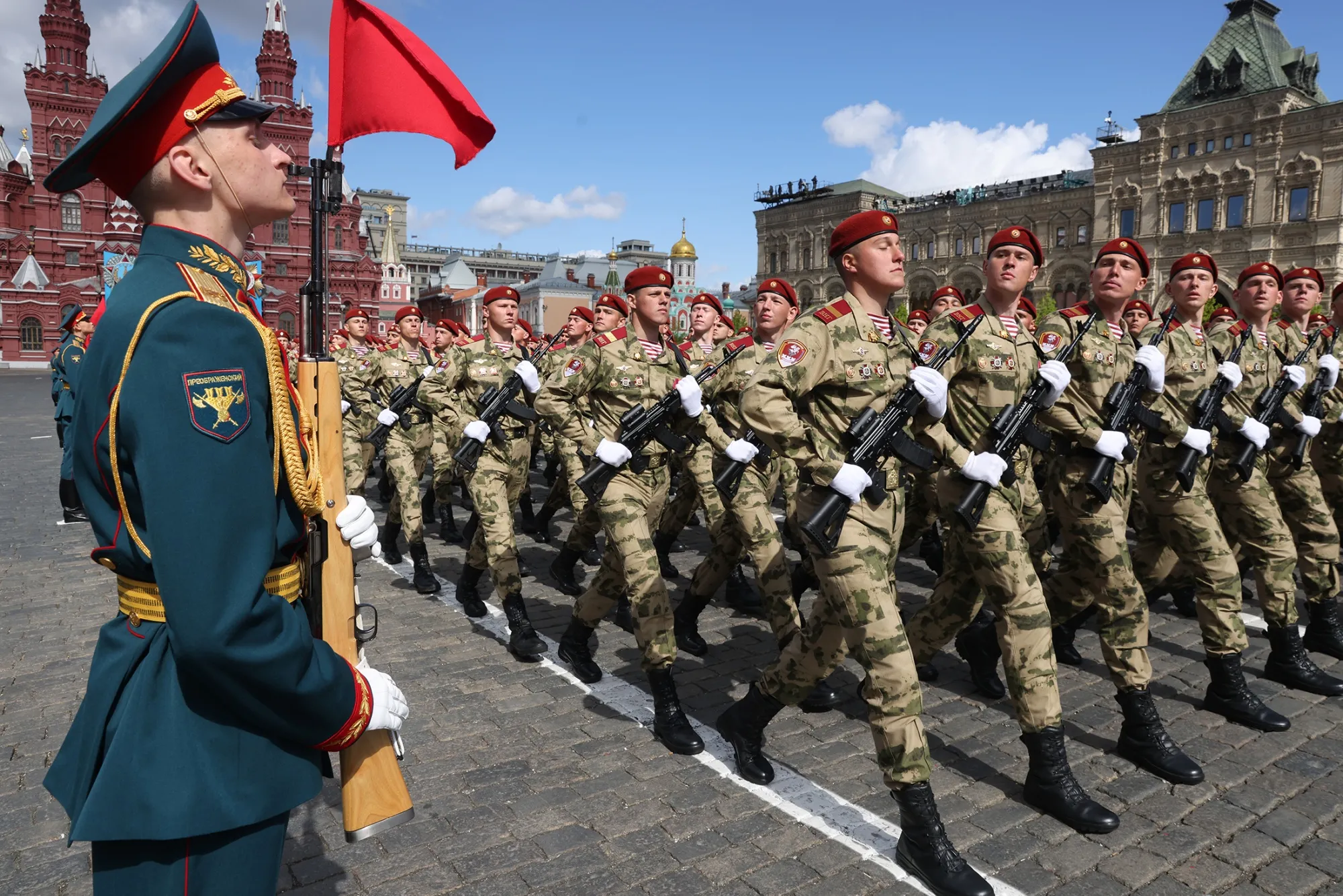俄罗斯国民警卫队的军官在5月5日莫斯科红场的主要军事阅兵彩排中行进。来源:Getty Images战争复兴了苏联时代人们向当局举报邻居、老师和同事缺乏爱国主义的习惯,写信控告当局进行刑事调查。