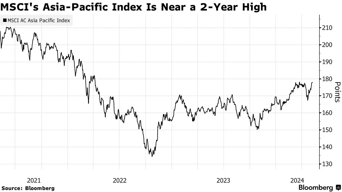 - 区域股市的一个指标 正在迎来自 2 月以来最长的 上涨,得益于日本、韩国和澳大利亚的反弹。随着投资者调整对美联储政策的预期,股票获得了提振。