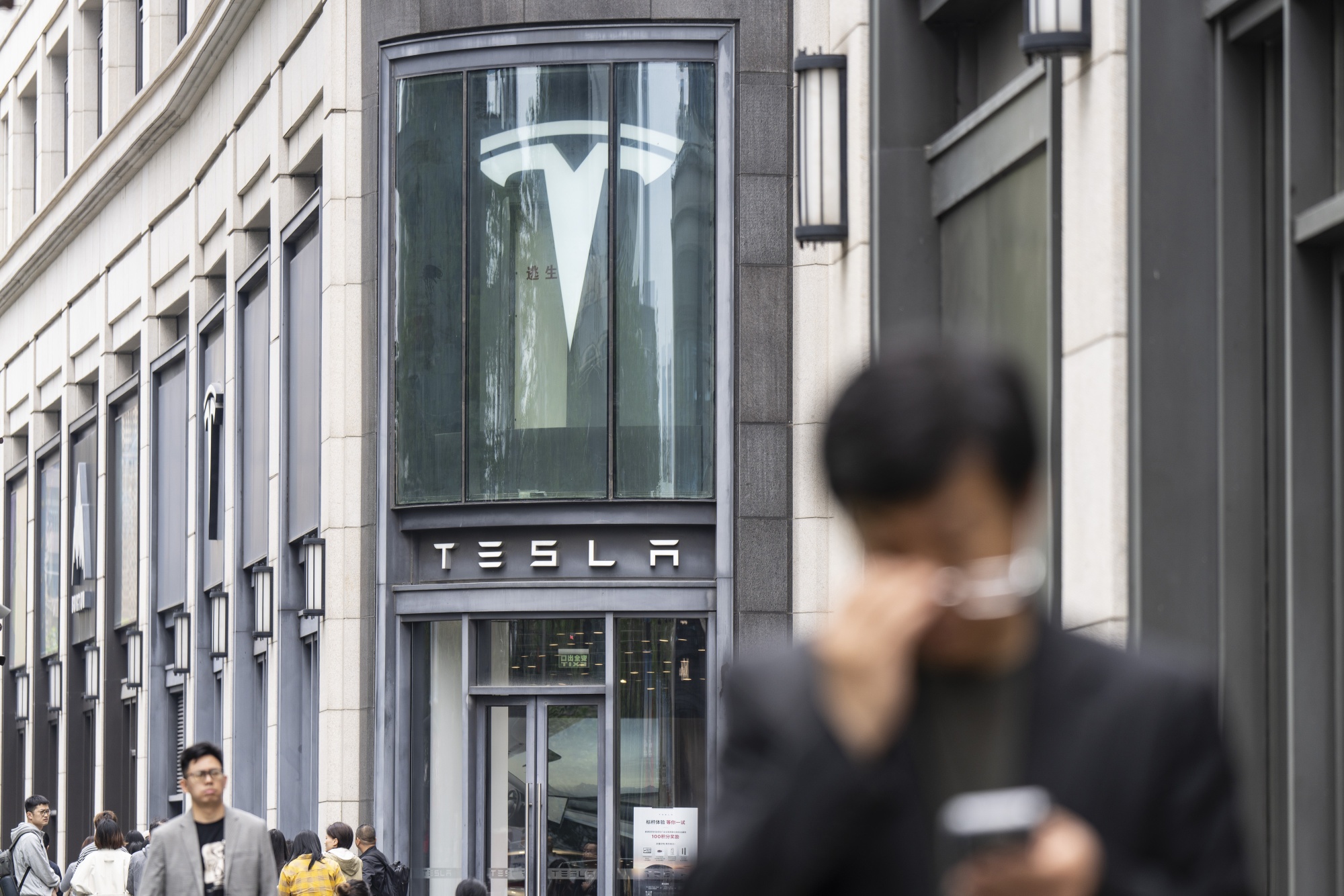 特斯拉公司在上海的展厅。摄影师:Qilai Shen/Bloomberg