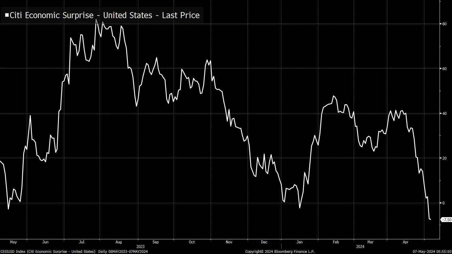事实上,在报告发布后,我们收到了花旗银行最新的美国经济意外指数更新,该指数转为负值,降至一年多以来的最低水平。