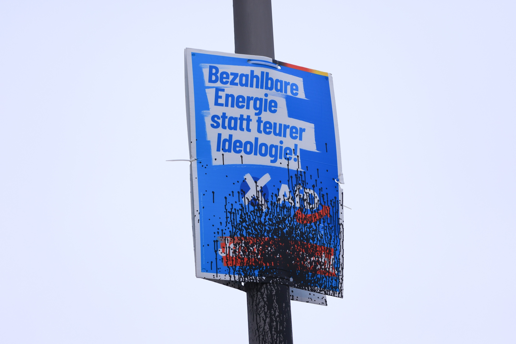 在柏林被涂鸦的德国选择党选举海报。摄影师:克里斯蒂安·博奇/Bloomberg