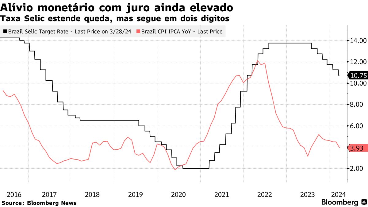 在彭博社调查的28位分析师中,19位预计利率仅降0.25个百分点至10.50%,而9位则预测中央银行将把Selic降至0.50个百分点,遵循所谓的“前瞻性指引”,即Copom在3月会议上给出的未来信号。
