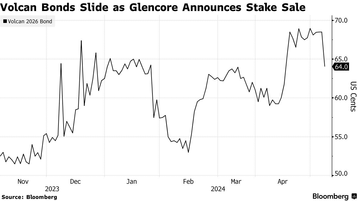Volcan Cia Minera SAA 的债券和股票在瑞士商品巨头 Glencore Plc 宣布出售其在秘鲁锌矿的控股权后下跌。