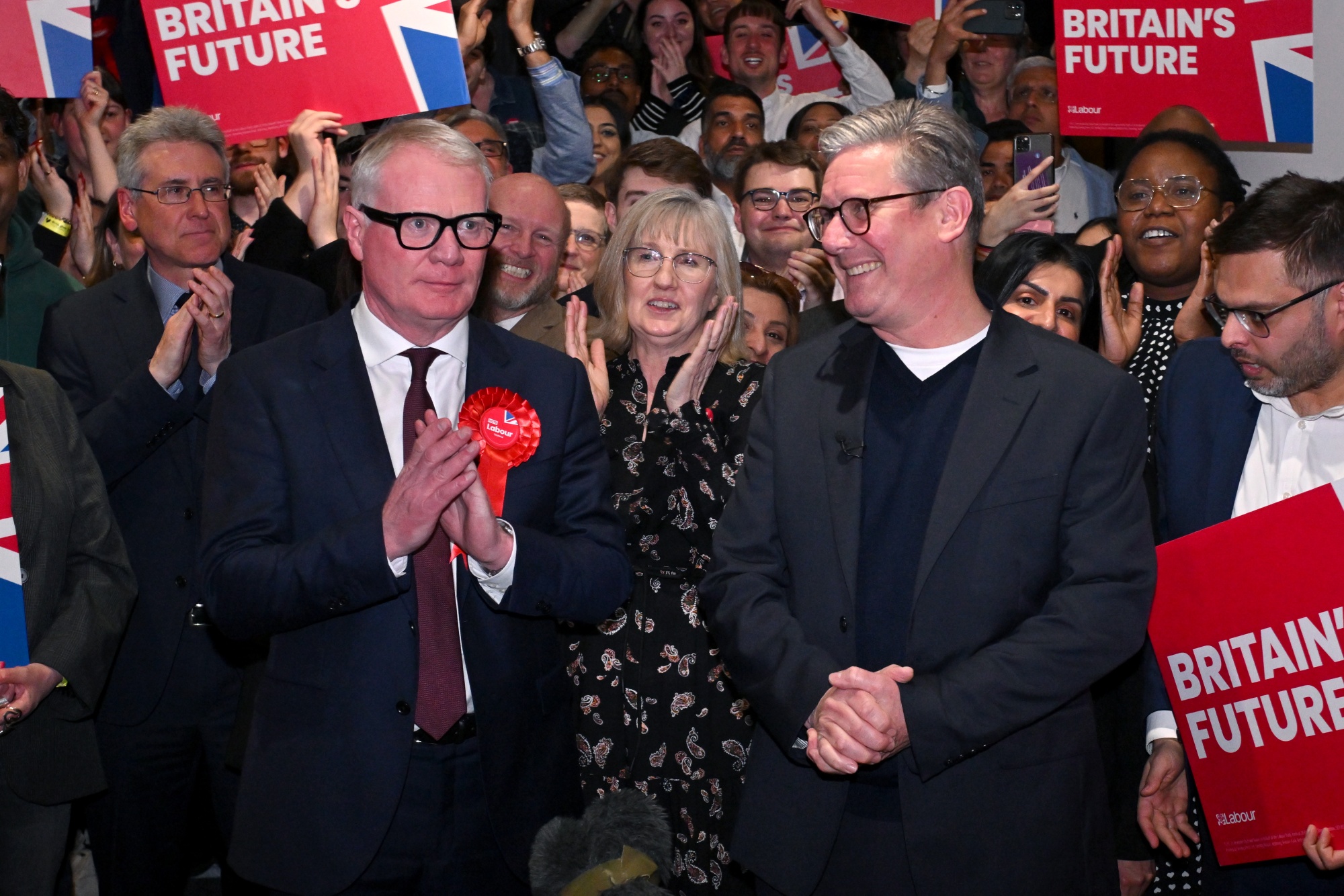 基尔·斯塔默在5月4日于伯明翰与新当选的西米德兰兹市长理查德·帕克庆祝