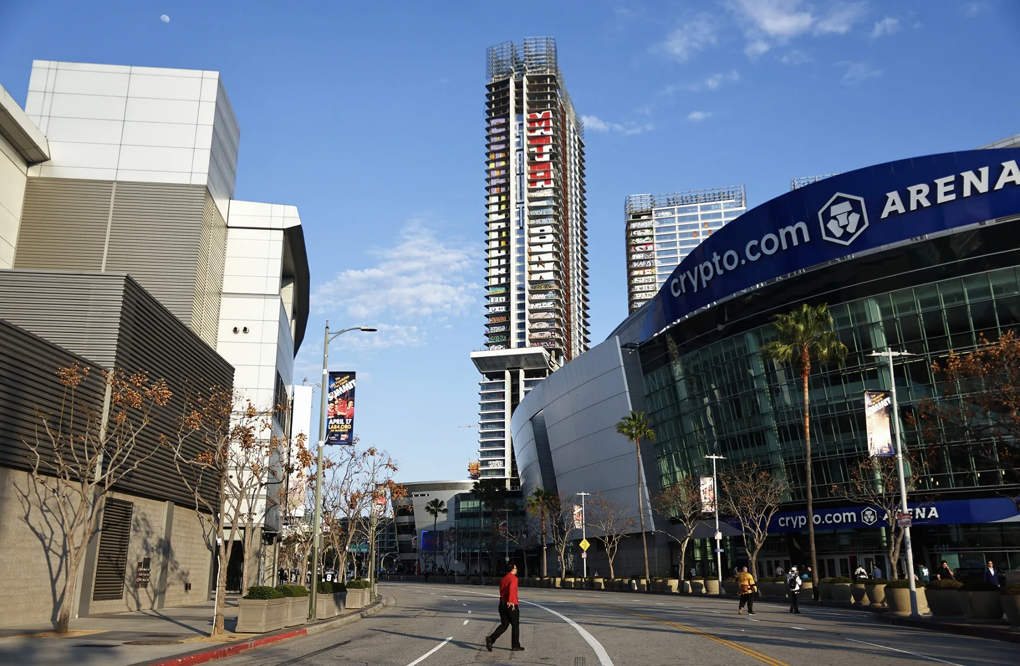 位于洛杉矶Crypto.com Arena附近的Oceanwide Plaza开发项目。摄影师:Mario Tama/Getty Images“我认为这是这个建筑复苏的好机会,能够展示破产案件如何解决许多问题,”Weiss说。