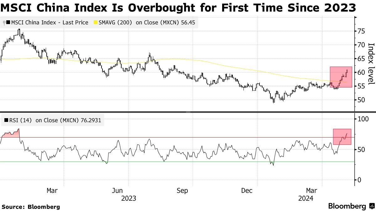 这家美国银行警告由于技术超买信号和企业盈利持续压力,不要追逐中国股票的指数级反弹。“我们预计反弹势头将减弱,”策略师劳拉·王和乔纳森·加纳在周二的一份报告中写道。