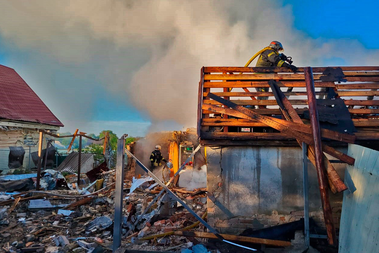 在5月8日俄罗斯袭击基辅地区后,紧急服务人员在现场。来源:乌克兰国家紧急服务