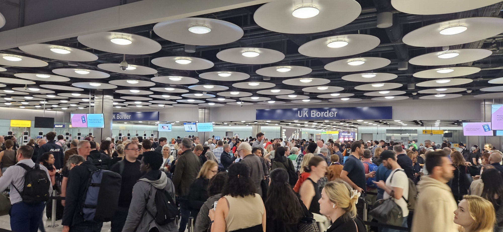 希思罗机场的故障和其他机场昨晚导致长时间延误,因为移民官员不得不手动处理乘客。英国边境闸门已恢复在线。