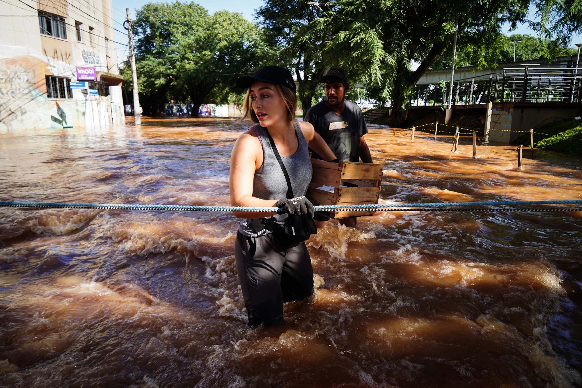 居民在巴西南里奥格兰德州的阿雷格里港经历暴雨后的洪水。摄影师:卡洛斯·马塞多/彭博社除了针对个人和企业的税收优惠和融资援助外,政府还将寻求为南里奥格兰德州政府提供债务减免,以促进道路和基础设施的重建,她说。
