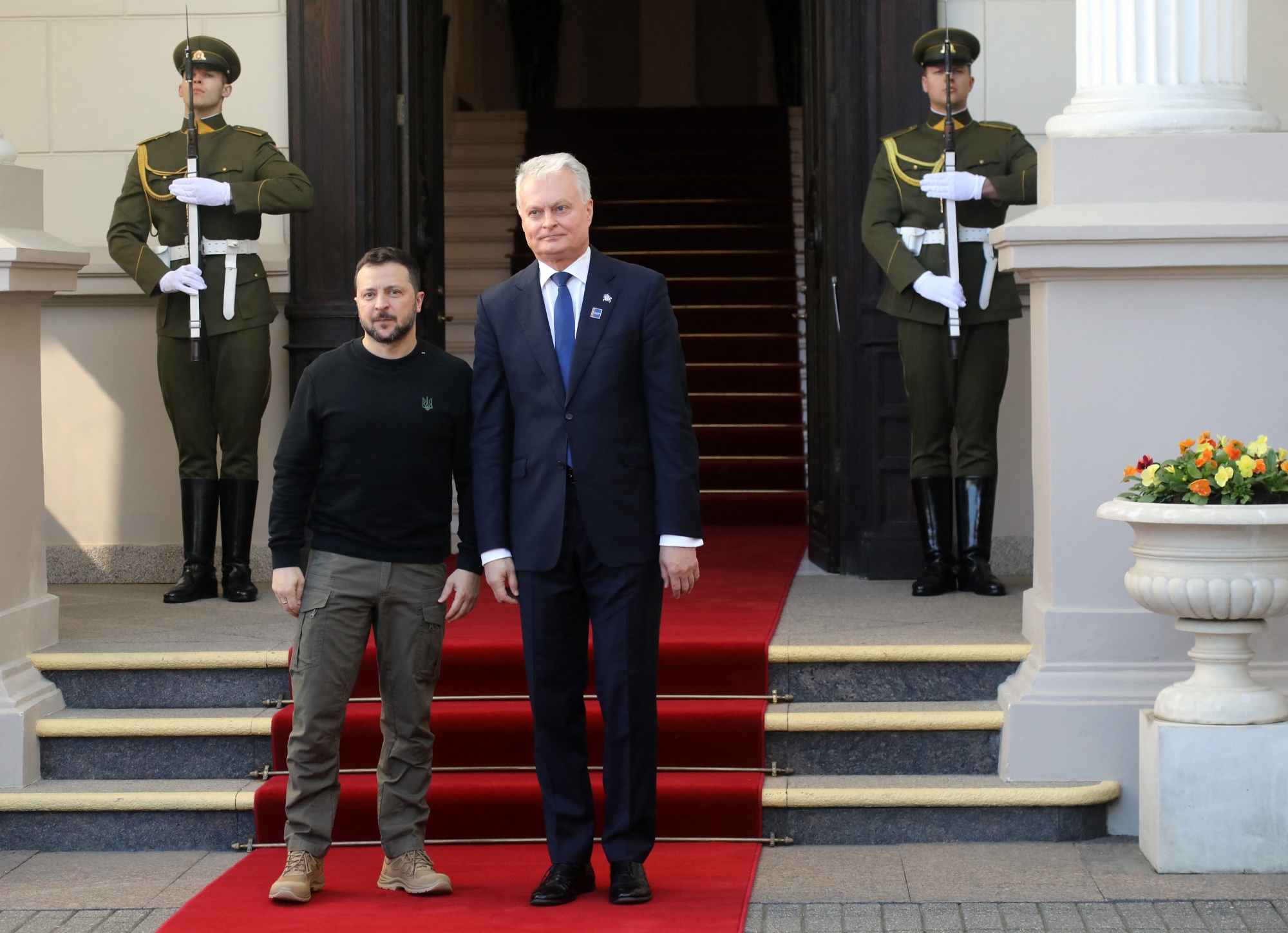 乌克兰总统弗拉基米尔·泽连斯基(左)和立陶宛总统吉塔纳斯·纳乌塞达于4月11日在维尔纽斯。