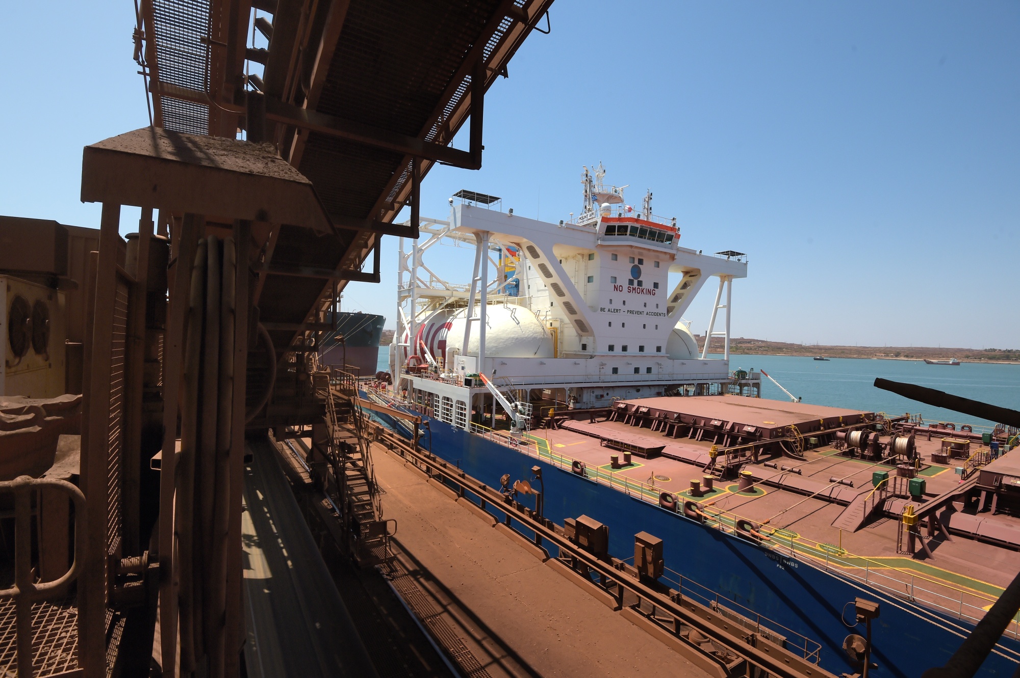 一艘液化天然气船在西澳大利亚卡拉萨的一个设施加油。