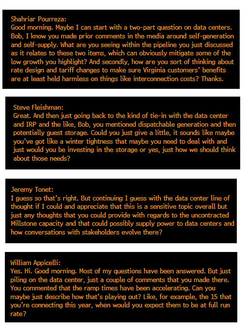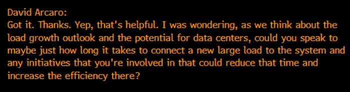在该公司最近的财报电话会议上,几乎每一个问题都与数据中心有关,以及多米尼将从激增的需求中受益多少。去年同期,仅有 一个问题与此相关。