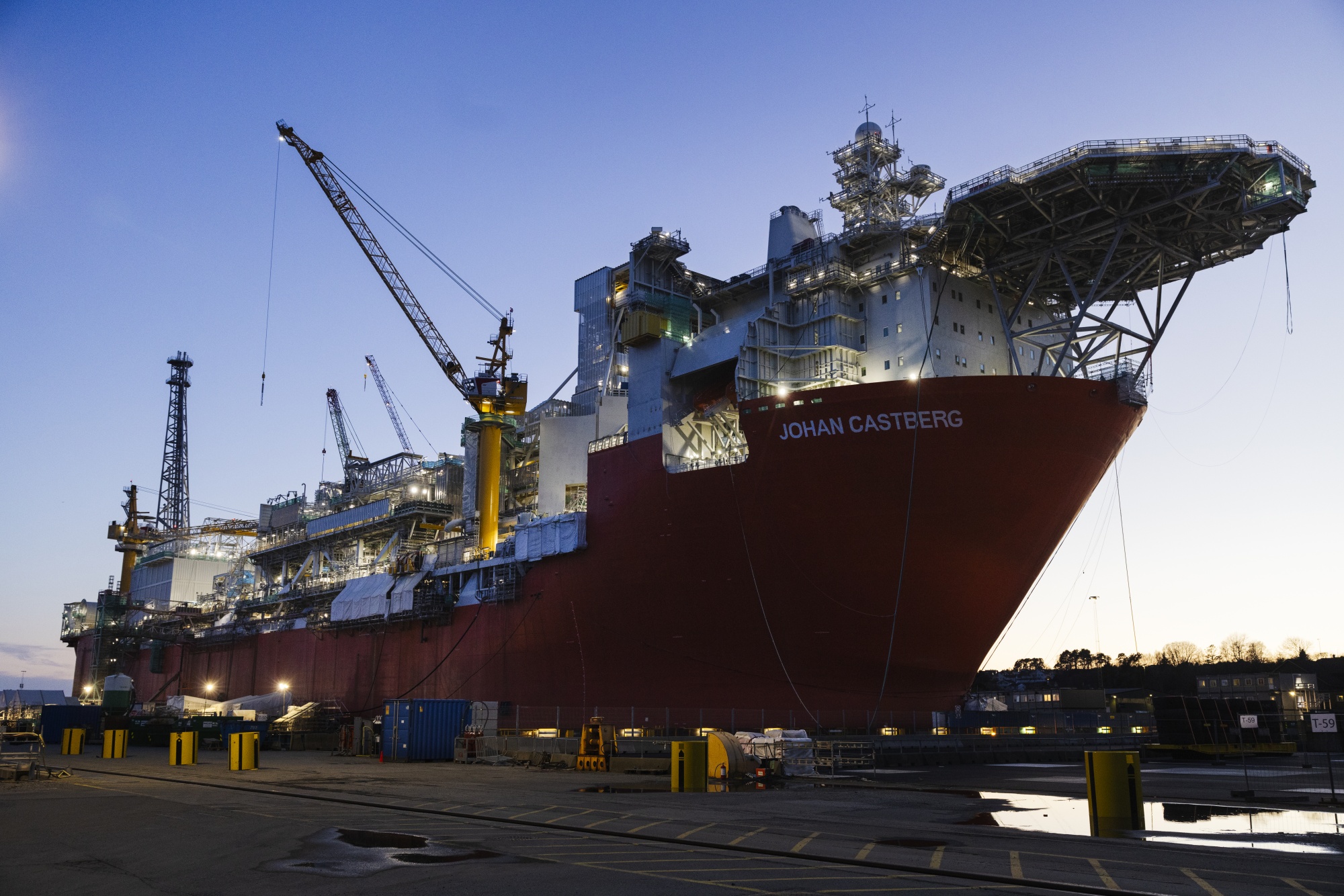 约长313米(1,027英尺)的约翰·卡斯特堡生产船与世界上最大的航空母舰USS Gerald R. Ford大致相同。它的油箱容量可容纳多达110万桶石油,来自30口井。该船将在夏季的大部分时间里停靠在码头和锚泊在斯托德造船厂附近的峡湾,进行最后检查,然后北上开始在第四季度生产,最终每天增产至约22万桶。