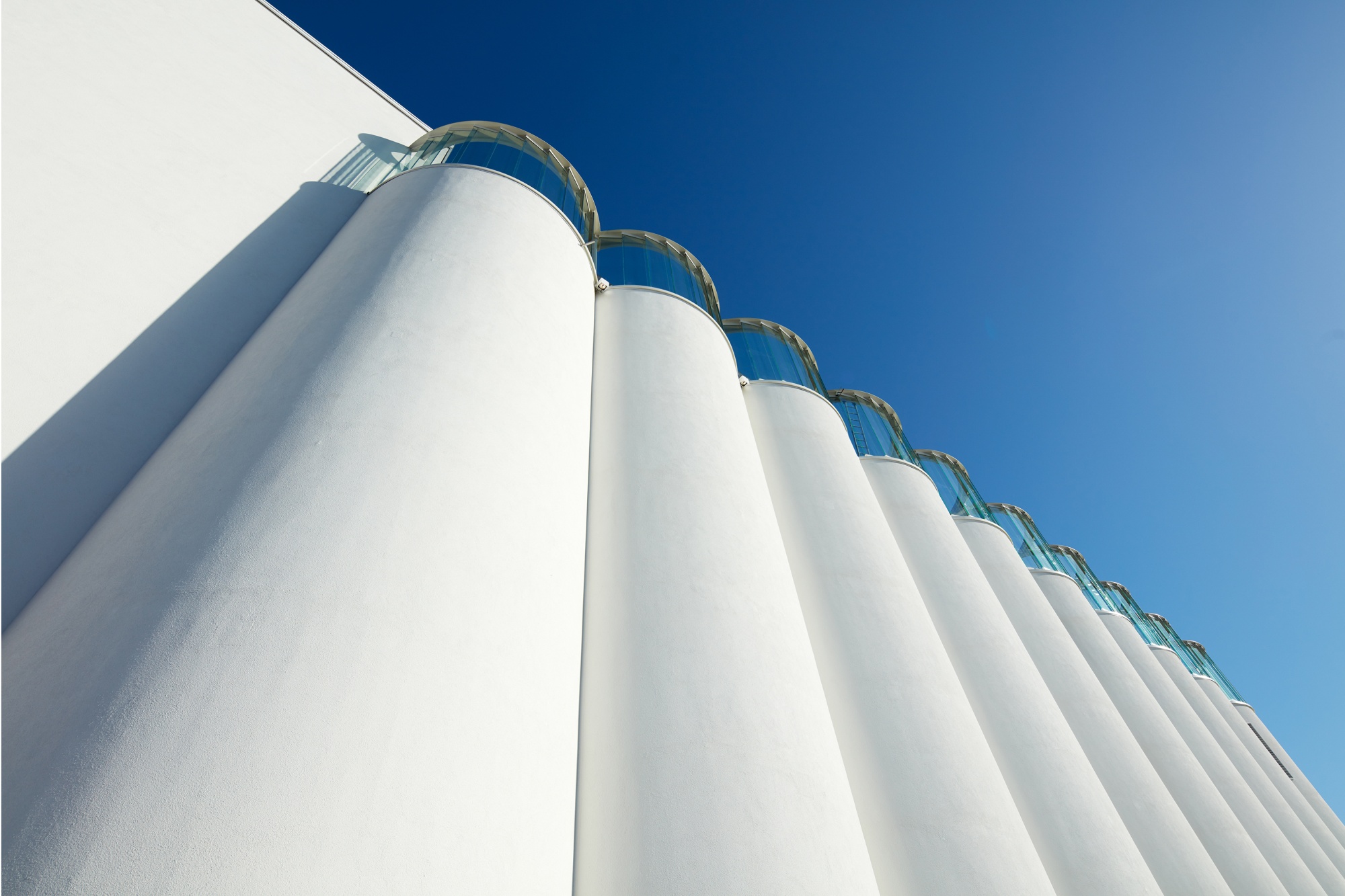 位于奥德罗亚岛,城市的南端,这座建筑最初可以容纳多达15,000吨的谷物。采用滑模技术建造的钢筋混凝土塔楼——混凝土在施工向上移动时允许干燥——这种方法后来被用于建造挪威的许多海上石油平台。