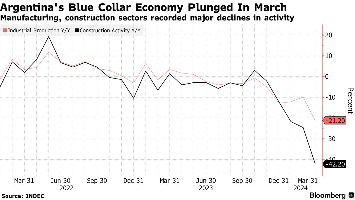 阿根廷工业产出和建筑业在经济衰退中大幅下滑 - 彭博社