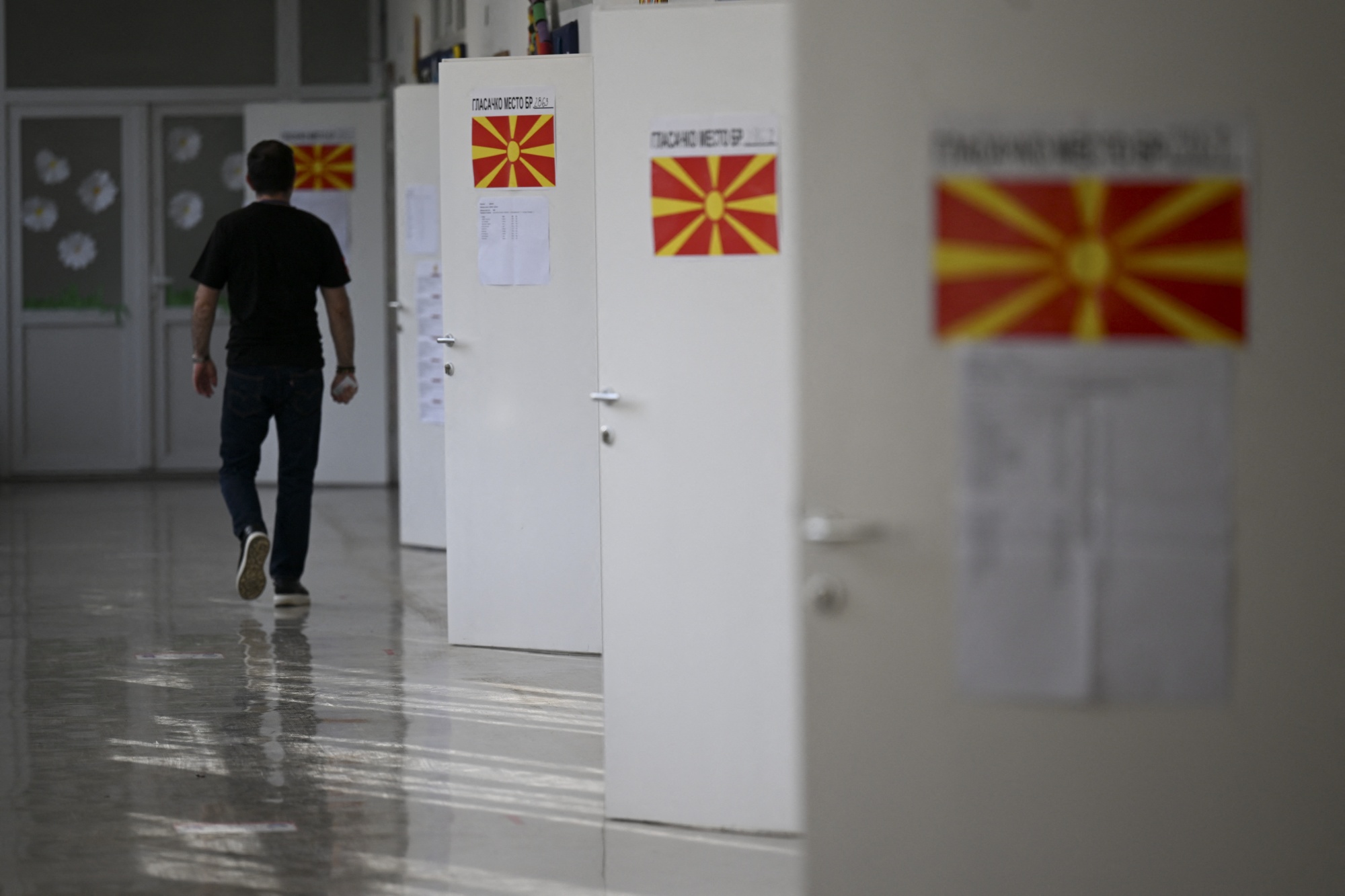 选民于2024年5月8日在斯科普里的一处投票站到达投票。摄影师:阿门德·尼马尼/法新社