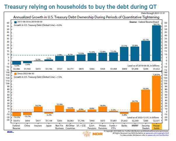 卡利什指出,现在的债券买家与 量化宽松时代的债券买家不同。目前,买家对价格敏感,负担主要落在家庭身上,他补充道。