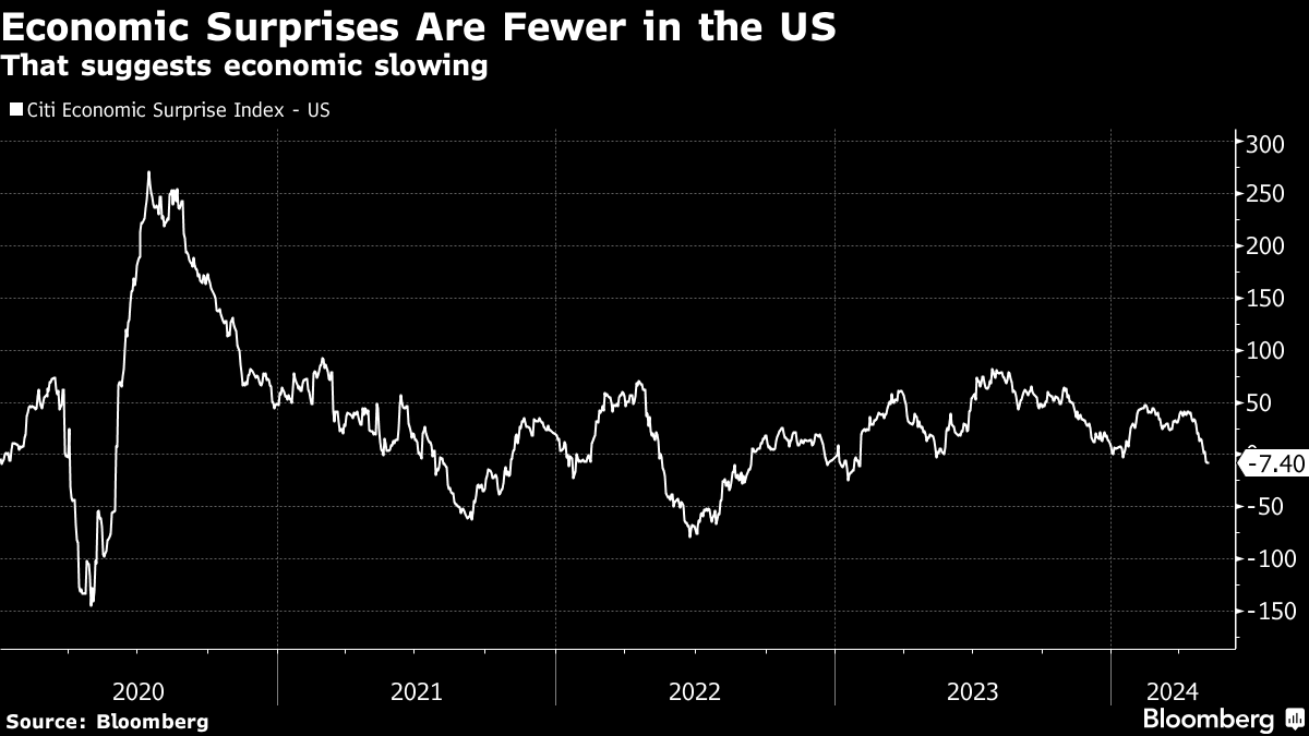 但这里存在一种紧张关系。你不能在消费者价格通胀超过3%且增长预期超过4%的情况下,风险资产同时上涨而没有政策回应。要么增长和通胀必须放缓,要么利率必须上升。我的赌注在前者,因为花旗经济意外指数已经降至一年多以来的最低水平。