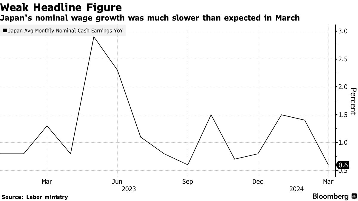 日本最新的工资数据显示,尽管更深层趋势的指标指向稳定增长,但薪资增长在过去两年中每个月都落后于通货膨胀。