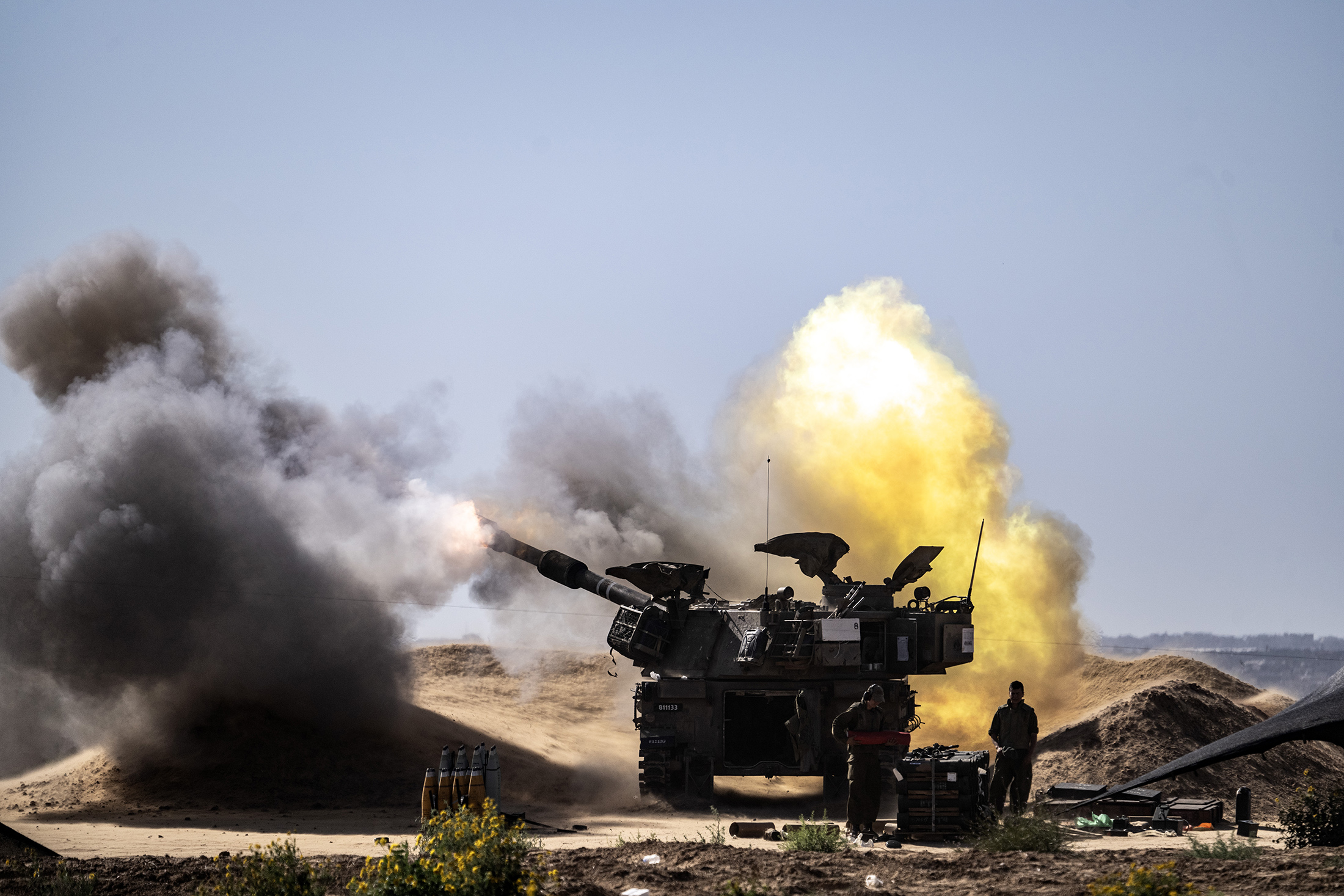 以色列炮兵部队在拉法边境向加沙南部开火,时间是2024年5月8日。摄影师:Mostafa Alkharouf/Anadolu